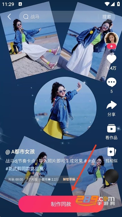 用户们挑选完模版后,点击“制作同款”,一键快速生成同款视频