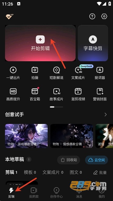 打开app,用户们可以直接点击剪辑页面的“开始剪辑”,开启自己的自由剪辑之旅