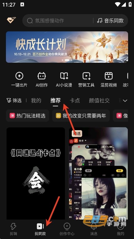 AI驱动创意内容:内置AI文案库、AI绘画、AI文生图等创作资源,支持AI故事短片生成、小说转动漫、照片变舞王等特色内容制作;提供AI变装、AI生视频等创新玩法,输入指令即可生成专属图片或视频,为创意创作提供更多可能性,打破传统剪辑的灵感局限。