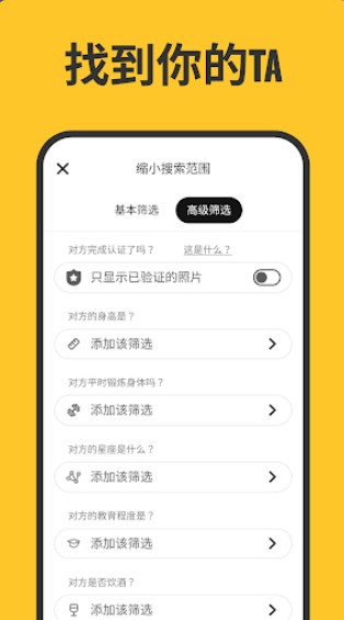 用户们可以通过基础筛选或者高级筛选功能来匹配心中的那个ta