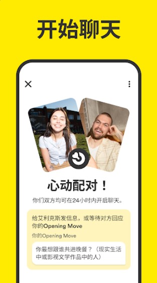 女性主导的匹配互动:核心功能是在约会板块中,当男女用户互相右滑匹配后,由女性先发起对话,若24小时内女性未发送消息,匹配将自动失效,确保女性掌握互动主动权,减少不必要的骚扰。在同性匹配中,双方均可在24小时内发起对话。